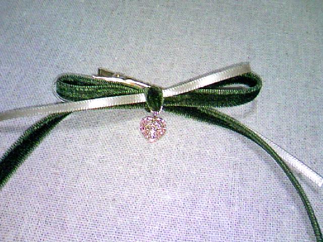 ムーンストーンは入れ込めませんでしたが、普段でも使えるように落とし込んだ結果緑のリボンになりました。